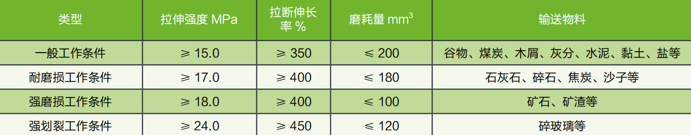 執(zhí)行GB/T7984-2001《輸送帶 具有橡膠或塑料覆蓋層的普通用途織物芯輸送帶》標準。